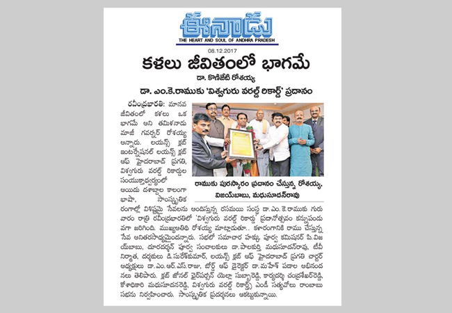 Dr.M.K.Ramu get Vishwa Guru World Record for Playing 12 Hrs Cultural Events